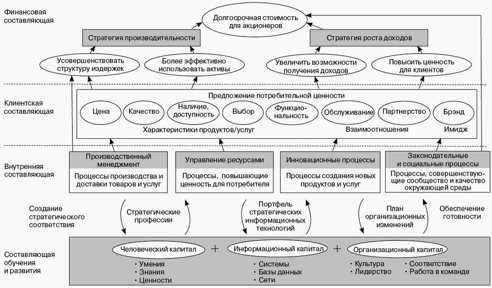 Р. Каплан и Д. Нортон уделяют значительное внимание проблеме соответствия нематериальных активов стратегии предприятия [3, с. 213239]. Суть проблемы в том, что цели всех трех компонентов нематериальных активов должны находиться в стратегическом соответствии с целями внутренних процессов и быть интегрированы с каждой из них (рис. 2).