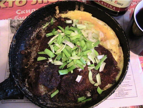 Alternate with eggs: if you must, and you really want fried, fry mustard In the pan poured the oil a bit, rolling it across the pan, brushing the entire surface. Specially in now existing and standing on the lowest shelf of the fridge a jar, drained all the oil from the pan, put on fire and hot we pour our eggs. Now about the eggs. If you really want to or have not made do with milk, again a 2.5% zhirnosti. And most importantly, in all embodiments, two yolks, the rest whites use! The egg yolks in a separate jar for homemade chocolates. (see desserts). Less salt: it is no use to us. She retains fluid in the body. in our opinion-deposited on the waist extra! but salt, alas, nothing is impossible: if sugar is still possible, in part again,