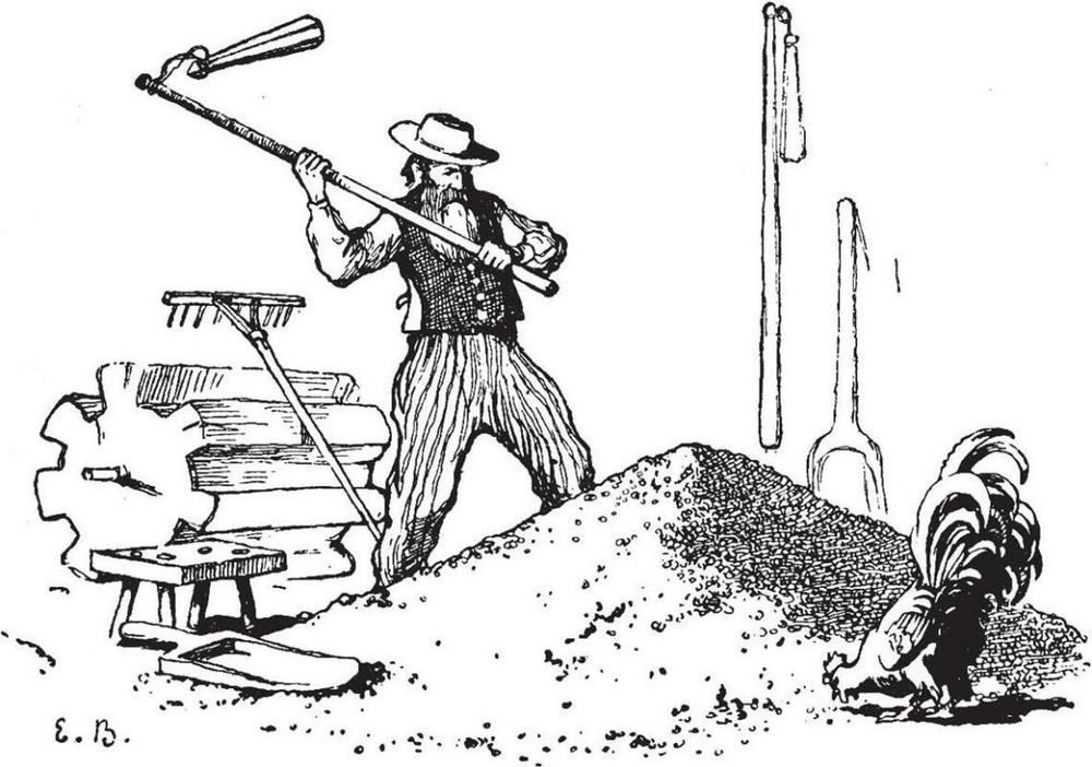 Dzīvojis nabags saimnieks tādās pussakritušās mājās, ka bailes bij vidū iet: jumti sazvēlušies, noplīsuši, lietus pa griestiem plikšķēdams tecējis istabā tik traki. Zirgi vīram gan bijuši divi gabali bijuši bet tikai jau nu arī tukšus ratus jaudājuši pavilkt. Un govis cik jaunu bijis tās pašas kauli un āda; stumjamas, ceļamas. Bērni atkal to bijis Dieva svētība tekājuši puspliki ir vēlākā rudenī, krimzdami sakaltušo garoziņu. Pienākuse ziema malkas mājā ne pagales gājis uz mežu ar sausu maizes riecientiņu kulītē. Aizgājis, pakarinājis kulīti nokaltušā zarā un sācis cirst. Izcirtis visu cēlienu, skatījies pēc uzkožamā nava vairs. Ko nu? ēst gribējies aplam sācis skumt. Te piepeši ieraudzījis smalku kungu tas tur gadījies, it kā no gaisa būtu nokritis. Kundziņš vaicājis: kamdēļ šis skumstot? Tā un tā maizīte nozagta. Ai, kungs nosodījies par tādu bezkaunīgu zagli un bažījies: kad tikai viņa paša puiši nebūšot tie paņēmēji? Un skaļi nosvelpies, tūliņ saucis: Juri, Ješki, Brenči, Miķeļi! kur jūs esiet? Nu saskrējuši gan lieli, gan mazi. Kungs prasījis: Vai visi še esiet? Miķeļa vēl neesot! Kungs apskatījies, un patlaban arī Miķelis kaunīgs un bailīgs līdis no krūmiem. Vai tu nepaņēmi šā nabaga vīra maizes kulīti? Paņēmu gan! Nu, tad par sodu tev tūliņ jāstājas šā saimnieka kalpībā un vesels gads par velti jānokalpo! To teicis, velna kungs ar citiem puišiem aizgājis, bet Miķelis paķēris saimnieka cirvi un sācis cirst, ka viss mežs atklimst saimnieks lai tik eimot uz māju! Cirtis nogāzis līdz vakaram veselu meža gabalu. Rītā prasījis saimniekam zirgu malku mājā pārvest. Kāds šim tas nātna zirģelis bijis tādu iedevis. Bet nu velna kalps Miķelis mežā nokrāvis tādu vezumu, ka rati tik tik nelūzuši uzsaucis zirģelim, lai velk. Gan rāvis zirdziņš stiepdamies kur nu pavilksi! ne pakustināt nepakustinājis. Nu, kad tā lieta tā šis uzsējis zirgu uz vezuma, licies pats ilksīs un viegli jo viegli pārvilcis mājā. Otrā dienā jau zirga vairs neņēmis līdzi pats vien visu malku pusmežu pārrāvis mājā un visas malu malas pieblīvējis. Pēc tam vēl Miķelis veselu lielu cirtumu baļķu savācis, uzcēlis visas māju ēkas gluži par jaunu un tad ievaicājies saimniekam: vai naudas nemaz nevajagot? Atteicis: Kā nu nevajadzētu, bet kas tad dos?