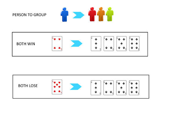 Alices Adventures in Wonderlandby Lewis CarrolPerson choose one card from 1 to 9 of red suit. Group chooses a set of card of one black suit.
