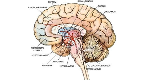 Fig. 4. Neocortex is a human brain; limbic system is our animal brain, and our reptile, or lizard brain is located in the brain stem. In this figure you can see several elements of the limbic system: thalamus, hypothalamus, amygdala, hippocampus, and a basal gland, all of which take part in the way our body reacts to any incoming message.