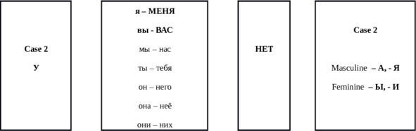 Compare the sentences: У меня есть сестра. (I have a sister). У меня нет сестры. (I have no sister). In the first sentence the ending of the word сестра does not change, as the answer is positive. In the second sentence the ending of the word сестра has changed from А to Ы, as the word сестра is of feminine gender. Thus, in the model У меня нет an ending of a noun changes in relation to a nouns gender.