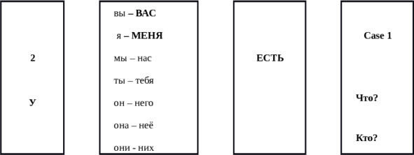 Note that in case of positive answer to the question the ending of a noun does not change: У вас есть машина? (Do you have a car?) У меня есть машина (I have a car). The only difference is that У вас has changed to У меня