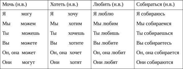 Memorize the conjugations of the verbs МОЧЬ, ХОТЕТЬ, ЛЮБИТЬ!