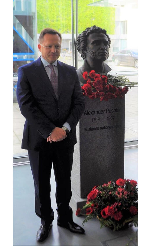 I am very pleased and proud, that in collaboration with our Danish colleagues from the Royal Danish Library and with the help of our sponsors from Russian International bank from Moscow and company DanSteel from Copenhagen we are unveiling today the bust of the famous Russian writer and poet Alexander Sergeevich Pushkin. It is particularly symbolic that on the same day, the 6th
