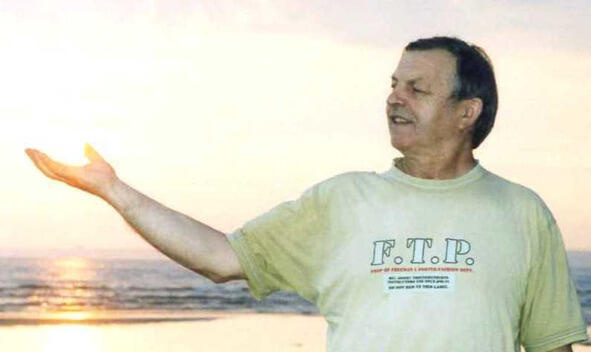 С.И.Шишков на берегу Финского залива, фото 2002 года