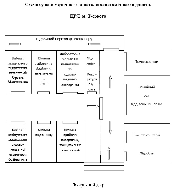Олександр з'явився тут рік тому, побувавши перед цим, незрозумілим для всіх чином, на практиці в Польщі і Естонії. Приїхавши до Т-ського, Демч вирішив все перекроїти на зразок того устрою моргу, який так сподобався йому за кордоном. Але річ у тому, що своєї території відділення судмедекспертизи не мало, оскільки відділення відкрилося лише зараз. Тому, у зв'язку з відкриттям, начальник обласного бюро СМЕ написав листа місцевому головному лікареві з побажанням виділити для МРВ СМЕ приміщення. У зв'язку з відомчими наказами, той був зобов'язаний піти йому назустріч.