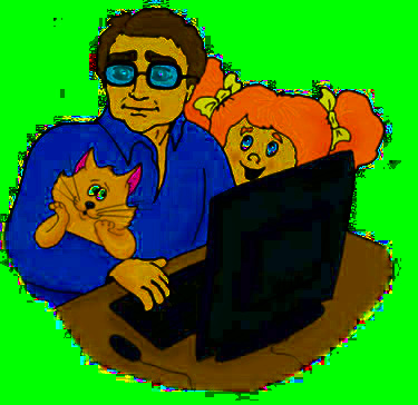Оля наблюдает за папой: целый час он сидит за столом перед компьютером очень мрачный наверное, никак не придумает, что ему написать.