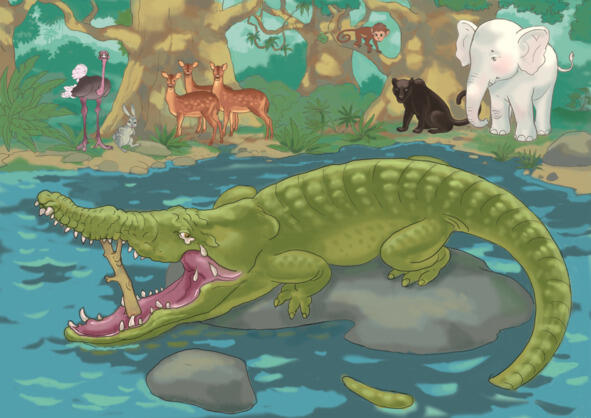 I am the watering place. Just hop into my mouth and get as much water as you wish, said the Crocodile King and opened his mouth as wide as possible.