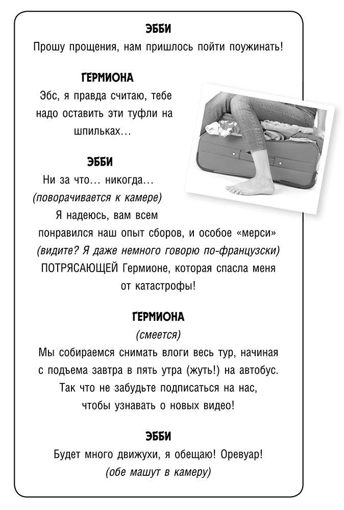 Так, Эбби и Гермиона, вы уже загрузили багаж? Да? Они кивнули. Хорошо. Идите, пожалуйста, в автобус, и я отмечу вас обеих. Да, Кайла, что стряслось?