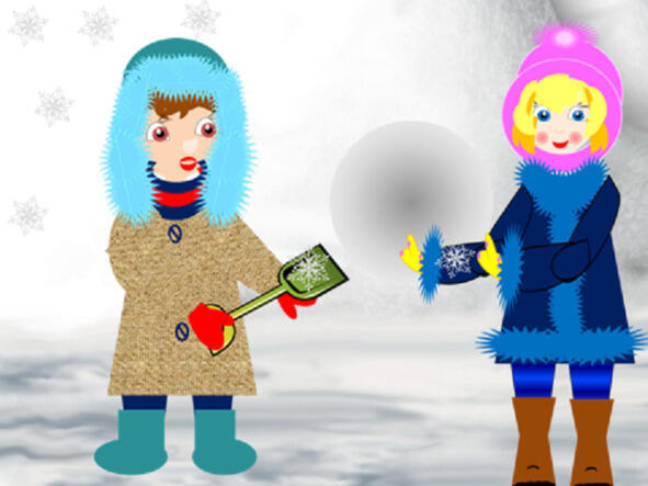Девочка осматривается, все дети заняты: несколько человек катаются с горки, крича и подбадривая друг друга, двое с серьёзным видом шагают по лыжне, осторожно переступая лыжами и неуклюже тыча в снег палками, один мальчик замер около большого сугроба. К нему и направляется наша героиня.