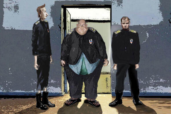 Протиснувшись в камеру, Брюхан, противно оттопырив толстые губы, произнёс тонюсеньким голосом: