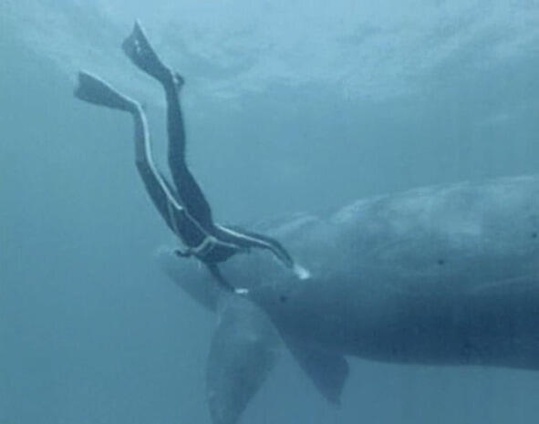 Доброжелательность китов позволяет аквалангистам приблизиться к ним и проследить за их движениями. В отличие от сказочных морских чудищ эти огромные морские обитатели не опасны для людей.