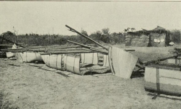 Следует помнить, что в столь большой экспедиции, охватывающей так много целей, приходилось иногда поддерживать большое количество рядовых участников, иногда до 200, которым приходилось платить и которых надо было кормить. Для этой цели было припасено большое количество товаров для торговли с местным населением. К ним относятся столовые приборы, иглы, 14 000 ярдов ткани из хлопка; лекарства от йодформа до масла для волос; а также зеркала, бусы и браслеты и многое другое. Покупки в те дни были громоздкой и трудной операцией, которую, я боюсь, наши мужские натуры заранее не совсем оценили.