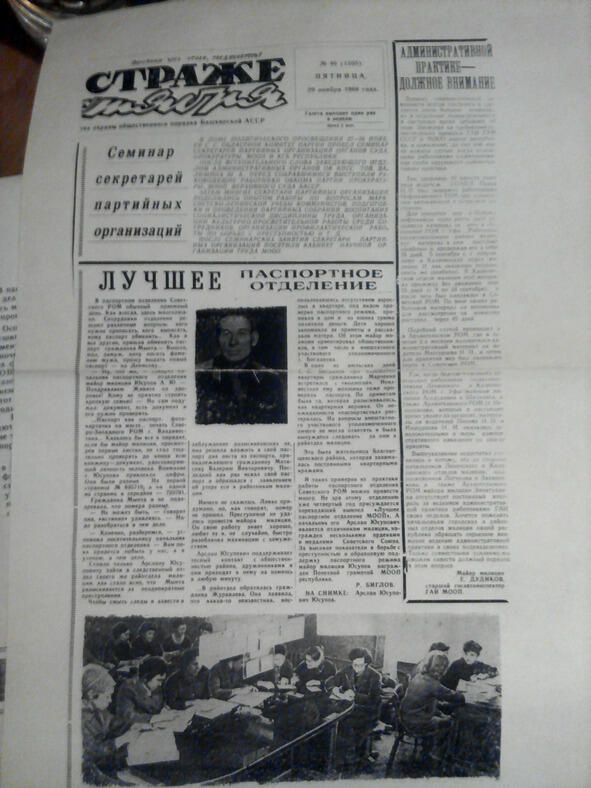 Как старший инспектор паспортного отдела он выезжал в командировке по проверке и оказании помощи работникам паспортного стола во всех городах и районах республики.