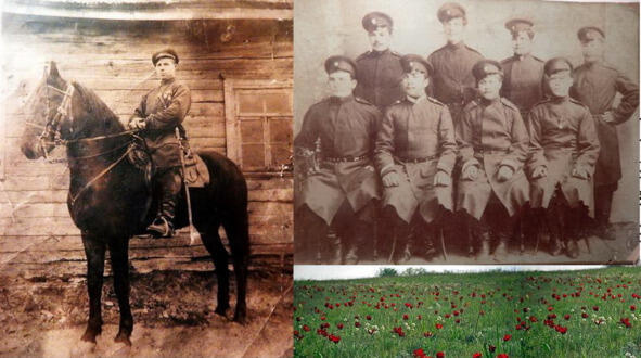 Верхом на коне Иван Гнутов, на другом фото, его отец Михаил во втором ряду первый с право.