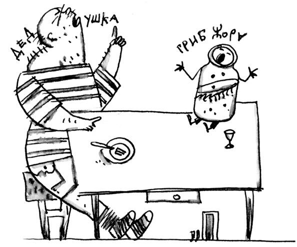 На кухне дедушка пел песню Геннадию Васильевичу. Геннадий Васильевич это чайный гриб редкой китайской породы. Он любит серьезную музыку или старинные песни, которые дедушка называет «комсомольские». «Welсome to the hotel California» или «Show me the way to the next whiskey bar» Кратко дедушка зовет свой гриб Жорой. Почему Геннадия Жорой? Непонятно. Дедушка строгий, с нами почти не разговаривает, всё с Жорой да с Жорой. «Один ты у меня и есть, Жора», говорит он, а гриб в ответ пускает пузырьки, как будто понимает. Нам дедушка не разрешает называть гриб Жорой. Только по имени-отчеству Геннадий Васильевич.