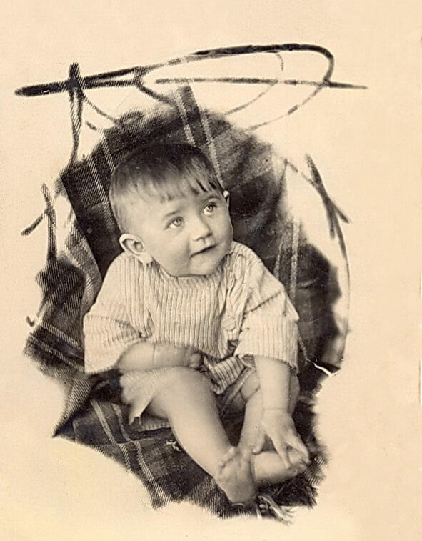 Мне восемь месяцев. Ходить естественно не умею, но сижу достаточно уверенно. Снимок сделан каким-то бродячим фотографом и выкуплен родителями.