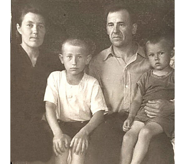 Это наша семья. В 1954 году у меня появился младший брат. В это же время родители начали строить дом, а до этого снимали комнату у старика по имени Егор Бонифатьевич.