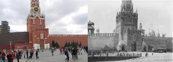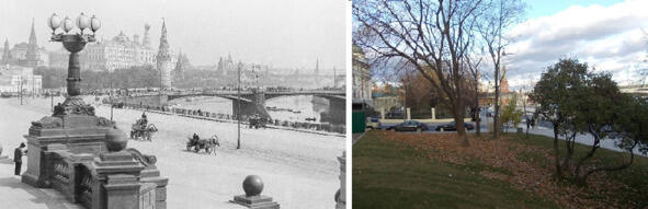 Auf dem Foto, wie Sie hier sehen können, sind Moskau, der Kreml und die Brücke fast unkenntlich obwohl genau hier der Fotograf das Foto gemacht hat. Die Steintreppe verschwindet, die Höhe, die solide Laterne, das Ausmaß der Straßen und Gebäude ändert sich. Was ist die Täuschung des Sehens, die Eigenschaft der Optik fotografischer Apparate oder die eigentliche anomale Eigenschaft von Raum und Zeit.