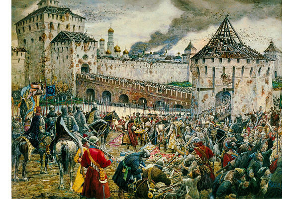 3. Die Befreiung Moskaus von fremden Eindringlingen, 1612: eine künstlerische Rekonstruktion, die sich gut für die Reise in der Zeit eignet.