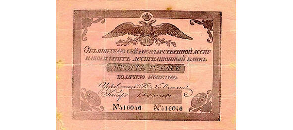 2. Banknote 10 Rubel, Auflage 1819 1849 Spitznamen: rot, Röteln, Krebs. Eine lebende Gans ist zwanzig Rubel wert, ein Dutzend Eier 23 Kopeken, ein Kilogramm frische 25 Kopeken.