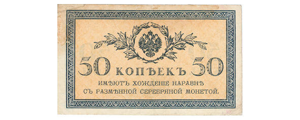 2. 50 Papierkopeken 1915, fünf Brote bereits im Preis gestiegen.