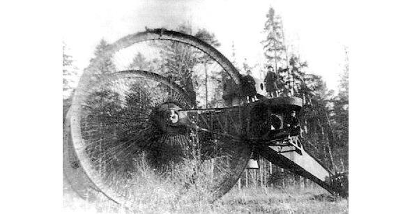 3. Einer der ersten Panzer der Welt (gepanzerte Kampffahrzeuge) «Netopyr», ein Spiegelbild des technischen Denkens der Zeit. Die Idee der Raupen ist noch nicht gemeistert, die Abnahme des spezifischen Bodendrucks wird durch unnatürliche Vergrößerung des Raddurchmessers erreicht. Kampfgewicht 60 Tonnen. Bewaffnung: zwei 76,2 mm. Pistolen, 60 Schüsse, acht 7,92 mm. Maschinengewehre «Maxim». Buchung: Brett, Stirn 10 mm. Besatzung 15 Personen. Die Höhe des Gebäudes beträgt 9 Meter (4 Stock). Geschätzte Geschwindigkeit entlang der Autobahn beträgt 17 km. h, eine Reserve von 60 km. Spezifische Leistung 8,5 PS Im Jahr 1915 wurde ein Exemplar gebaut, wegen falscher Zentrierung der Masse, es kam sofort zum Stillstand, es wurde nicht für den Betrieb angenommen. Wenn dies eine Reaktion auf den Vormarsch der deutschen Truppen ist, dann ist die Antwort falsch. Nach der «Verschwörungstheorie» wurde das Projekt von Beamten im Interesse Großbritanniens gesponsert. Sie stoppten auch das Projekt von Perekhovshchikovs «Outlander», nicht ganz in Betracht gezogen, aber vielversprechend, fähig, ein Keil zu werden.