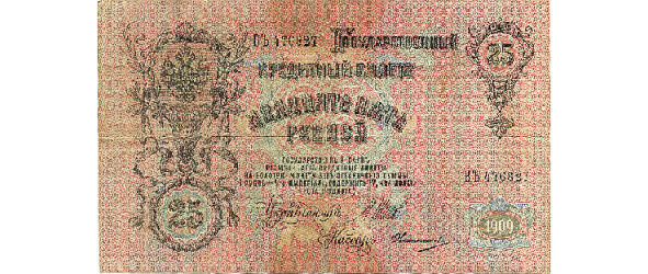 1. beliebt, dass Zeit-Banknote, 25 Rubel (ein Zimmer in einem Wohnheim Arbeiter sechs Monate Unpretentious Pferd Und 25 Rubel pro Rubel sind Pfannkuchen mit frischen Eiern im Restaurant bis zur Sättigung, den Preis im Jahr 1911.