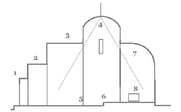 (Consistently) Narthex (the porch). Annex in front of the entrance to the temple, checkpoint. It is located on the west side of the main building. The usual place for penitents, listening to the few, heretics and pagans.