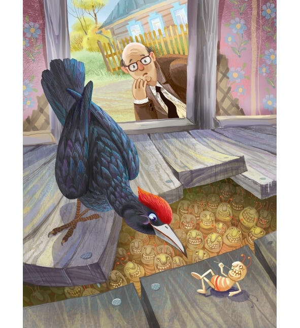 Послушался его чиновник отогнул одну доску. Заглядывает под неё и видит там всё кишмя кишит злыми зубастыми термитами. Вот какая болезнь-то, оказывается, со старым домом приключилась!