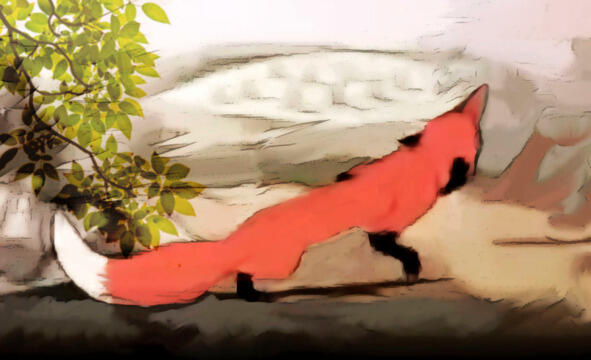 Как-то раз повадилась к ним лиса-плутовка ходить да кур из курятника таскать. Ночью тихонечко подкрадётся лиса ко двору, подкоп в курятник выроет и бегом с добычей, тут её и видели. В курятнике такой переполох, куры громко кудахчут, перья в разные стороны летят. Пока хозяин с собакой и котом на шум выбегут, а от лисы и следа уж нет. Только перья на земле дорогу в лес указывают, да лисий хвост вдалеке виднеется.