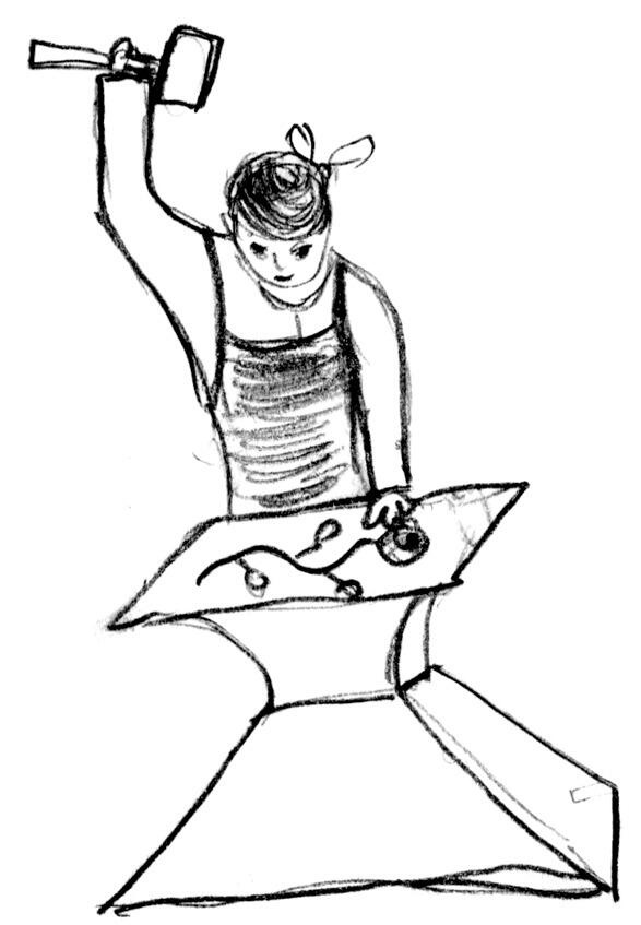 Помоги ей, сказал кузнец небольшому молоточку и тот ловко прыгнул девочке в руку.