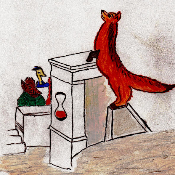 Хронос взял паузу и сказал, что он будет выступать последним. После этих слов пара слабонервных белок упала в обморок. Их быстро откачали сородичи. Чтобы как-то разрядить ситуацию, дали слово лисам.