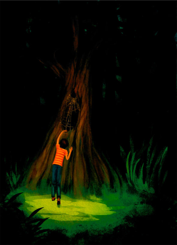 Паутина действительно была жуткая, и мне было страшно и противно лезть рукой непонятно куда. А вдруг там сидит какая-нибудь злая белка, или чего хуже, змея. Мне не хотелось остаться без руки в момент своей славы. Но любопытство взяло верх над трусостью, и, зажмурившись, я засунул руку в дупло. Там было мягко и сыро, видимо это был мох. Мха я не боялся, поэтому уверенней стал ощупывать дно. Под ним ощущался какой-то твёрдый предмет, поэтому на моём лице появилась торжествующая улыбка.