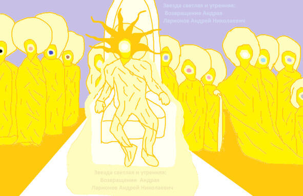 Посреди белой залы выше стеклянного моря расположен был белый трон, и король величественно восседающий на престоле. Ослепительные золотистые лучи озаряли все вокруг. Звездная свита была многочисленна и лики их были подобны звездам. Главный правитель с лицом звезды белой созерцал появление нового горожанина.