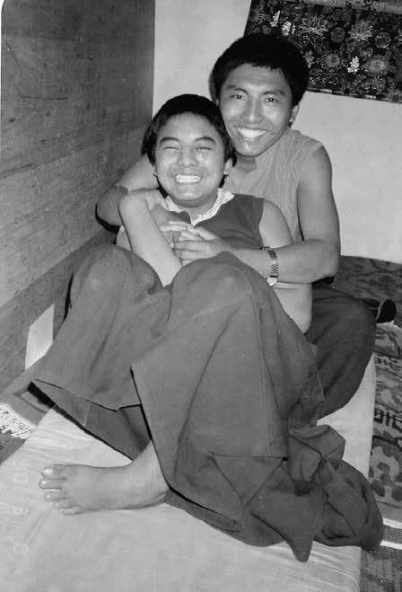 Мингьюр Ринпоче (на переднем плане) и Цокньи Ринпоче в монастыре Шераб Линг, около 1989
