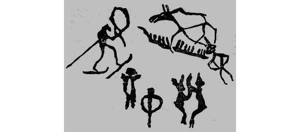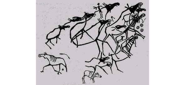2.Стиль I (2826 тысяч лет назад). Первые фигуративные изображения животных и знаков женского и мужского пола. Контуры грубые, неумелые.
