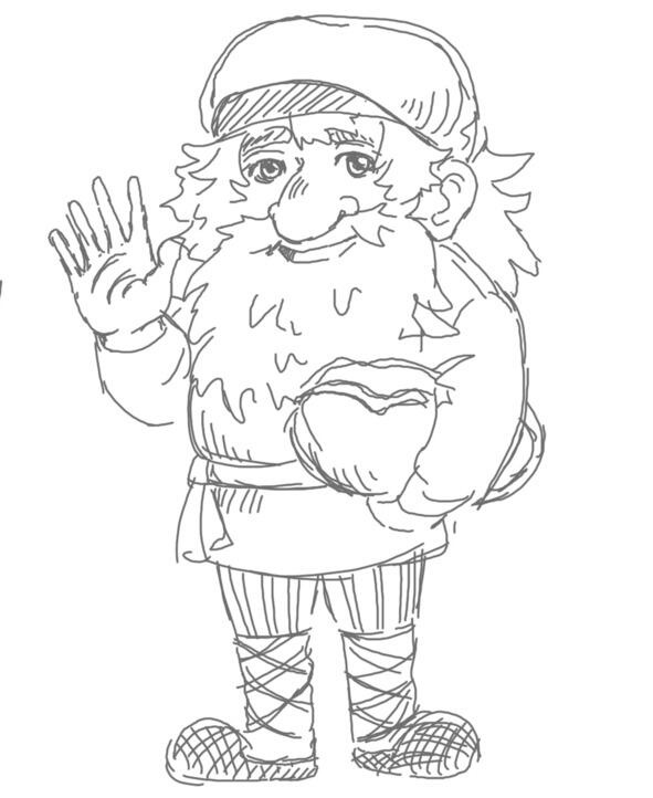 Под лестницей зашуршало, и к ним вышел маленький лохматый человечек в синей кепочке, рубашке навыпуск, подпоясанной ремешком, чёрных брюках в полоску и лаптях на ногах. Рубашка с вышивкой, точно бабушкины наволочки на подушках.