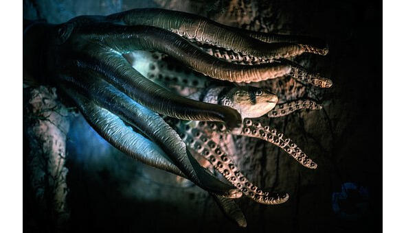 Бездонная пропасть и вдруг оттуда выскочило нечто такое, большое мохнатое паукообразное, и схватив человека скрылось в дыру.