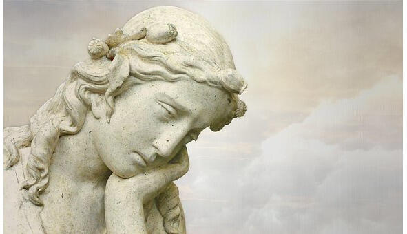 Нас осталось семеро. Так ребята, ждите меня здесь, я сейчас вернусь. Хорошо, мы будем вас здесь ждать, удачи вам. И я вернулся в зал с колодцем посередине. Войдя в зал, я подошёл к скульптуре головы у входа и я начал голову разглядывать, голова ангела или какого-то мифического существа была обычной скульптурой как в музеях Европы.