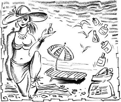 Мадам, видимо, тоже понимала, что она нравится окружающим. Может, она ощущала эти цветные мысли-стрелы, которые мужчины и женщины метали в её сторону: красные жгли её кожу страстью, зелёные холодили завистью, а оранжевые ласкали восхищением. Под туникой отчётливо проступало красное бикини, которое будоражило воображение Всеволода. А фигура?! Сказка! Песня! Высокая шея, слегка удлинённое лицо, аккуратно причёсанные волосы, стянутые сзади голубой лентой. Хвостик волос интригующе прыгал в такт её движениям. Казалось, что, поставь ей на голову кувшин с водой, она на ходу не прольёт ни капли и даже не заметит его. И лицо На расстоянии черты не просматривались чётко, но было понятно, что она не юная девушка, а зрелая, в самом соку женщина элитного розлива.