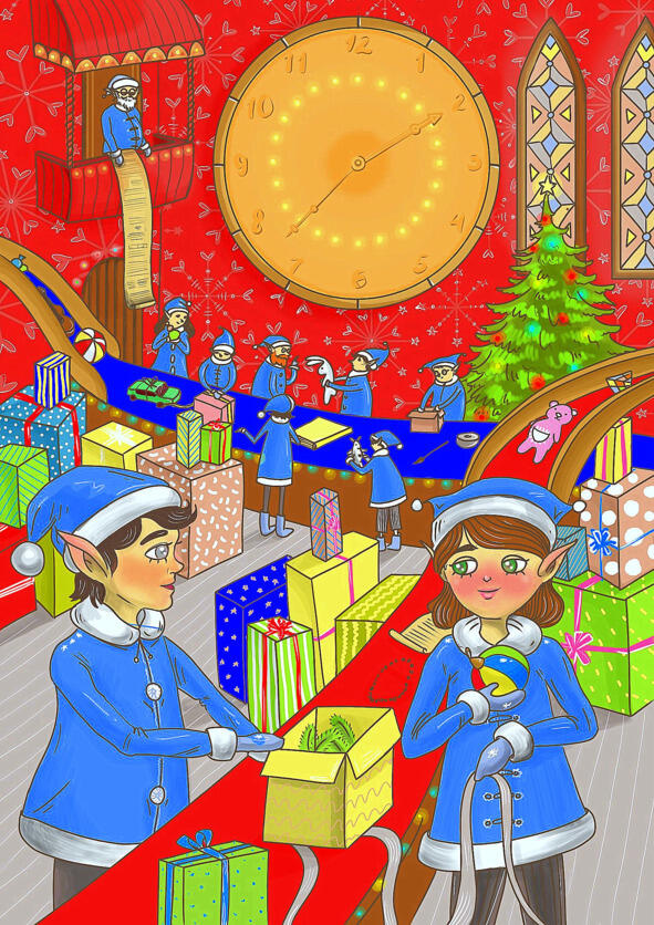 На фабрике игрушек Деда-Мороза без устали работали волшебные эльфы.