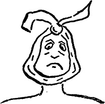 Hier zie je meteen hoe ik toegetakeld ben met dien dikken doek om mijn hoofd geknoopt! Heb je nu niet een beetje medelijden met me? Ik heb gezwollen amandelen. Ik heb nu al het heele jaar Menschkunde gehad en toch wist ik niets van die amandelen af. Wat is onze opvoeding toch oppervlakkig!