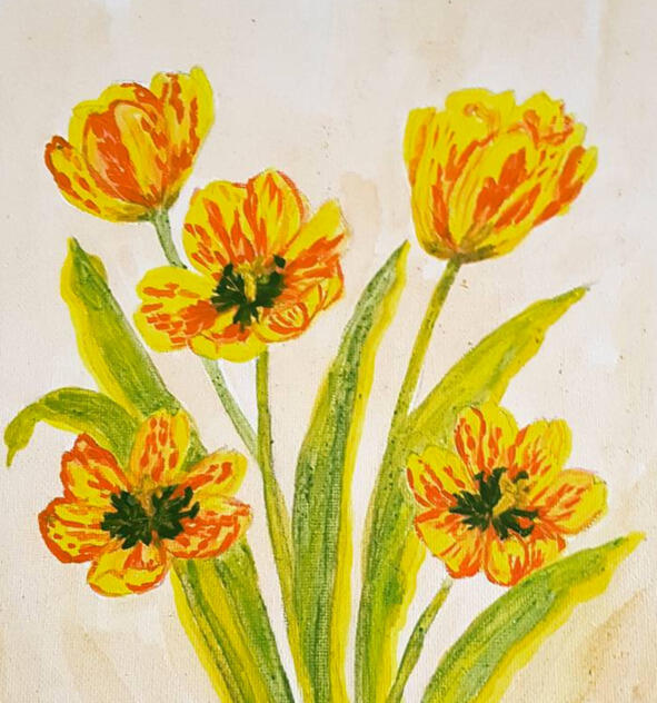 Смотри, Марьям, это тюльпаны. Они были желтенькие, а теперь видишь какое чудо?! Обалдеть!