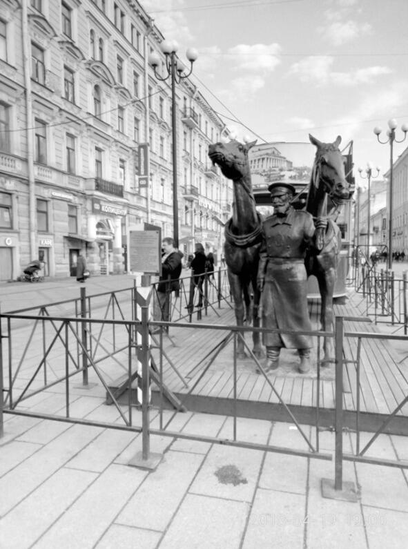 Это Памятник Конке. У метро «Василеостровская». «Василеостровский Арбат» пешеходные 67 линии тянется от выхода из метро до пересечения с Большим проспектом. В самом начале стоит памятник конке точная копия модели образца 1872 года. Все детали воссоздали по чертежам Путиловского завода. Конка первый общественный транспорт Петербурга. Вагоны ее бывали одноэтажными и двухэтажными; по рельсам их тянули одна или две лошади. В вагончике было 22 посадочных места, вверху, на империале еще 24, но туда пускали только мужчин. Экипаж обслуживали вагоновожатый и кондуктор.