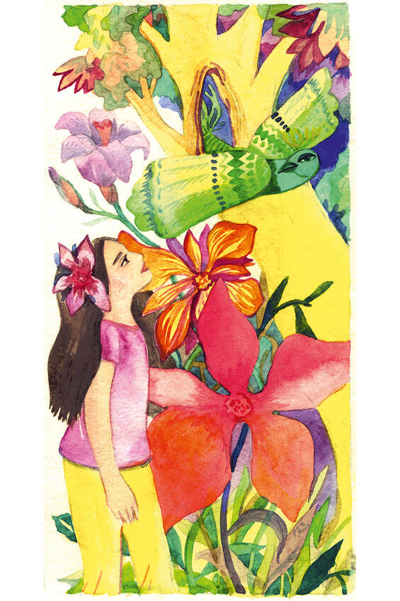 Прошло несколько дней. Однажды вечером, когда Юджиния сидела за столом и читала книгу, Лотос вернулся. Он выпорхнул из дупла. Точнее, вдруг возник из стены, где было нарисовано дупло, и заговорил.