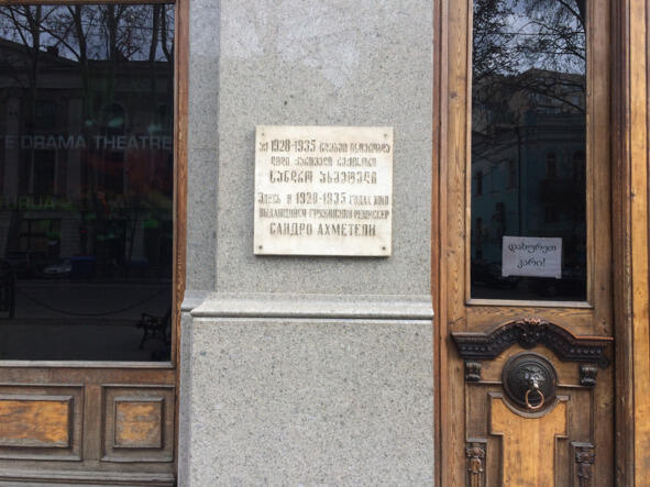 Memorial plaque on one of the buildings along Rustaveli Avenue