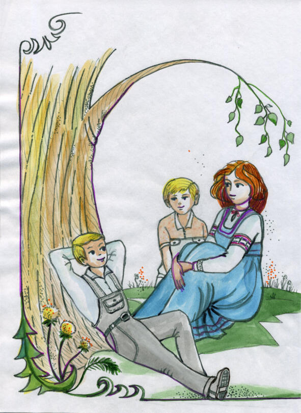 На следующий день Сергей, Светослав и их бабушка отправились на прогулку к большому пруду, что под горой.