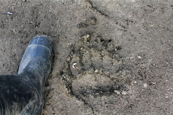 По берегам регулярно встречаются следы местных хозяев медведей. Их здесь очень много, все же коренная тайга.